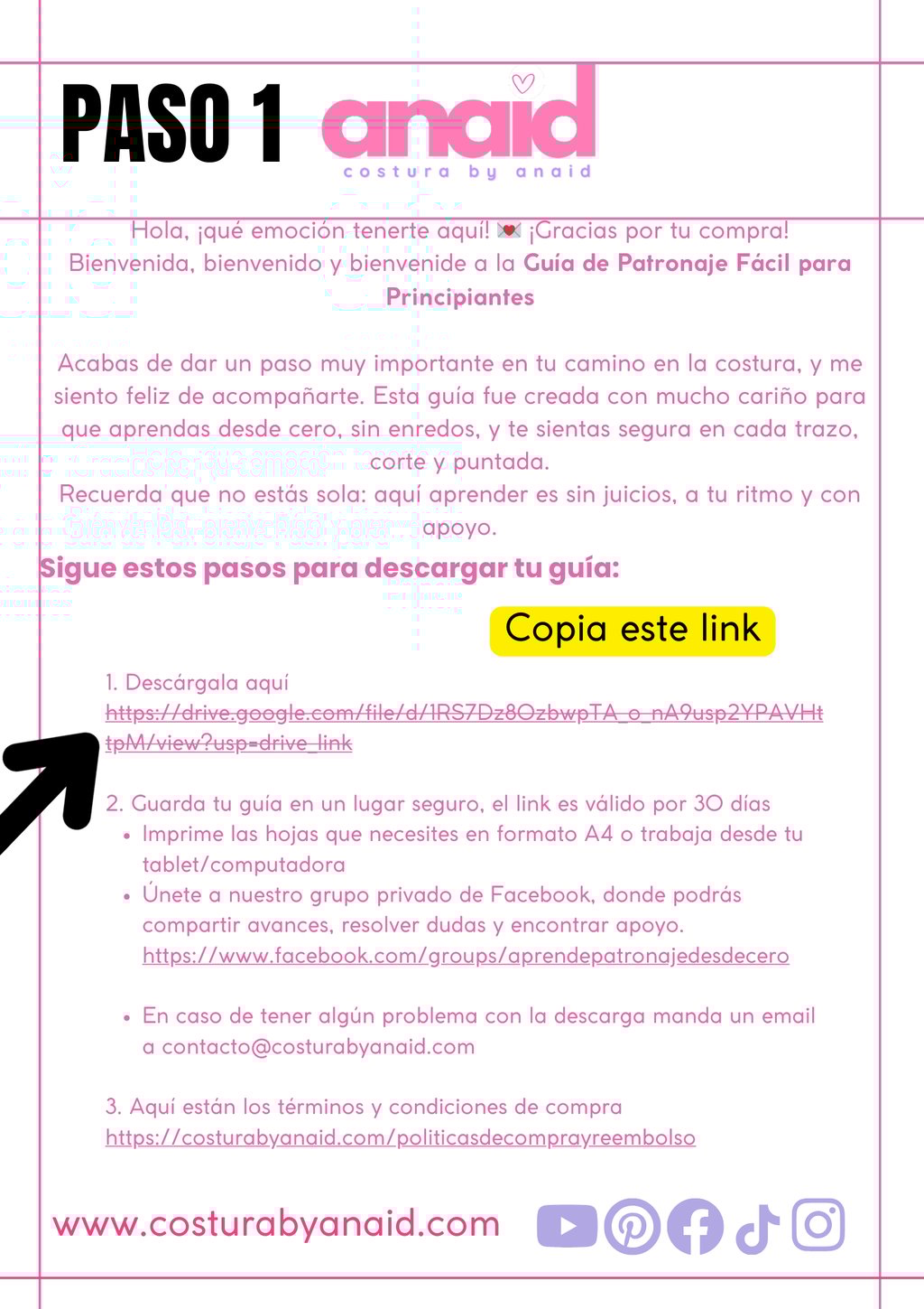 El archivo llegará a tu carpeta de descargas. Si tienes problemas, contáctanos en: contacto@costurabyanaid.com